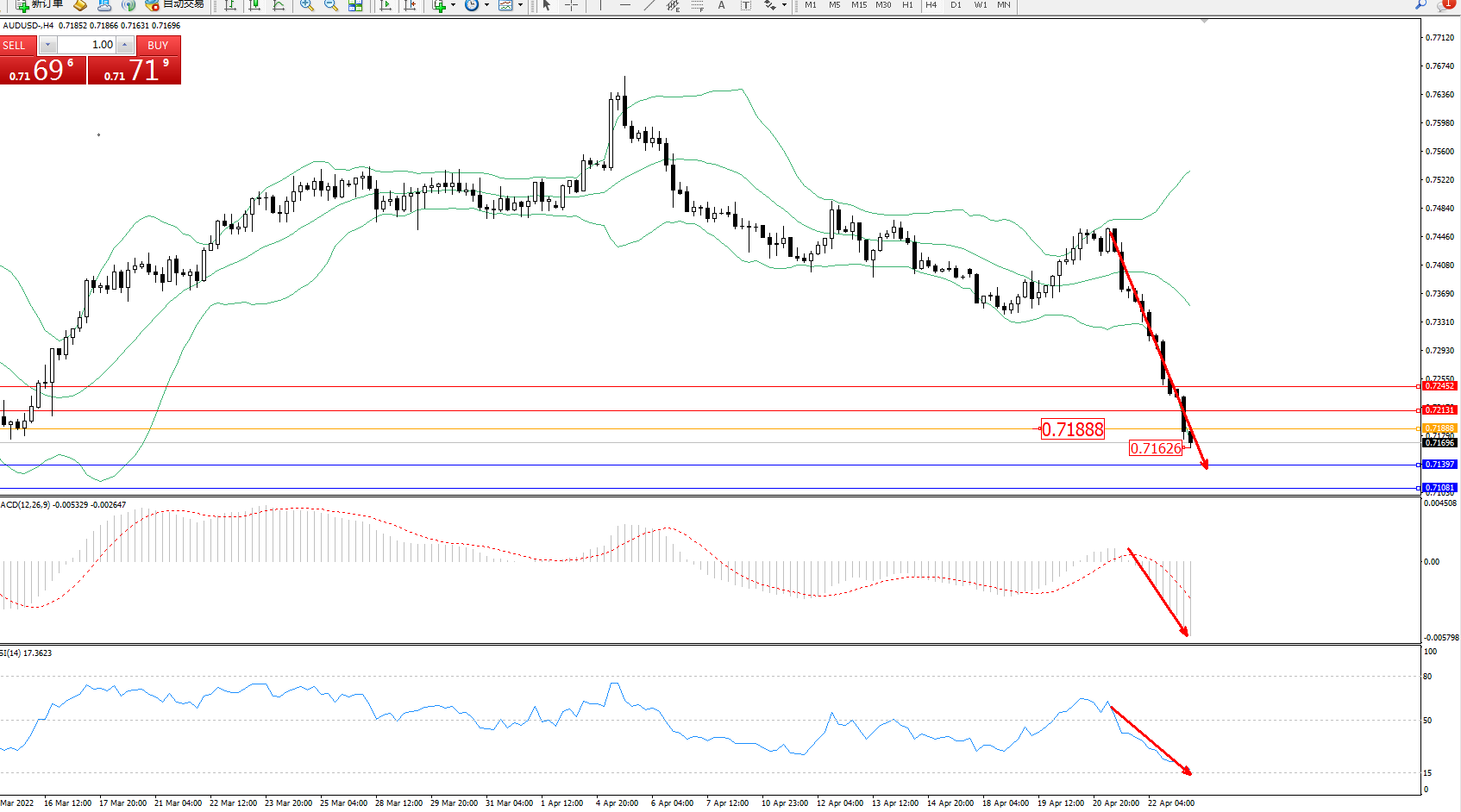 交易策略:0.71888下方看跌,目标0.71397、0.71081