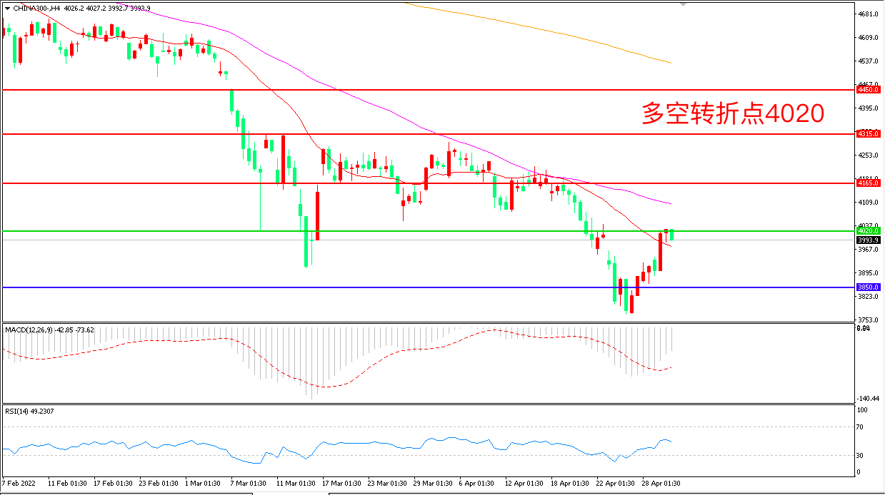 周四(5月5日),受外围市场影响,两市指数整体呈现震荡分化格局,沪深300冲高回落,收报3993.9点。两市合计成交9000亿元,北向资金净卖出23亿元。当前位置尽管有止跌迹象,但量能情况始终无法进一步放大,这也是当前市场的隐患所在,后续需综合海外通胀走势以及国内“稳预期”举措及疫情防控进展,来判断相A股是否进入修复的拐点。