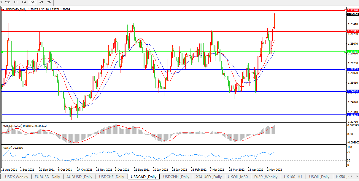 美元兑加元USDCAD 日线图: