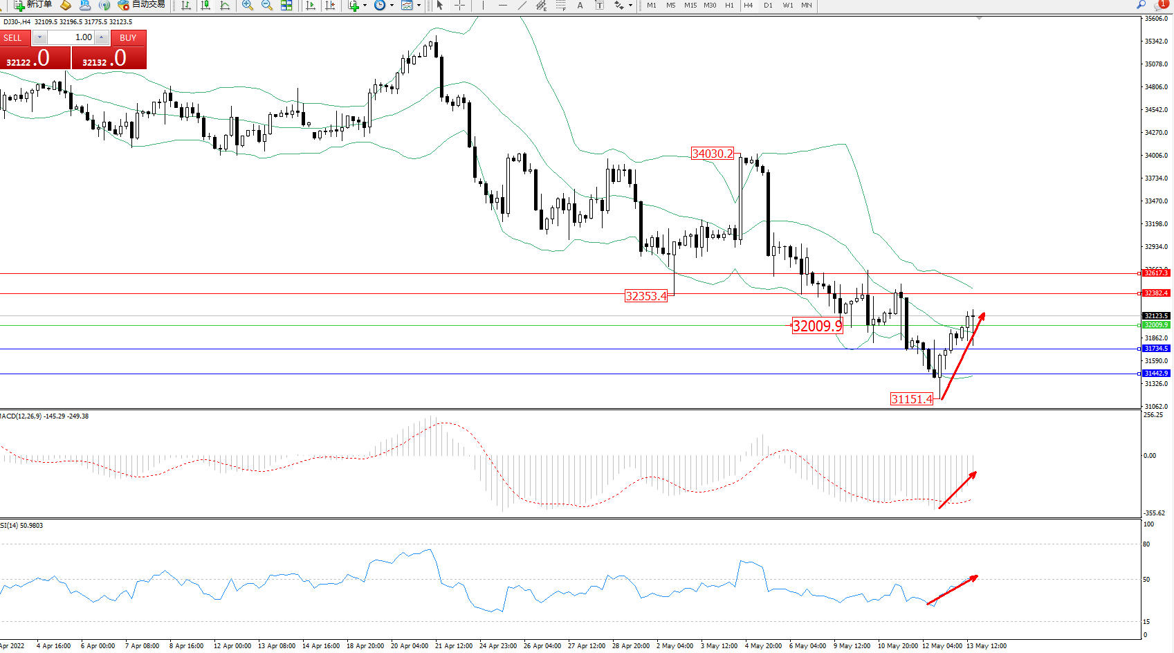 技术点评:空头动力延续布林带指标通道中下轨区间持续震荡下行,低位抵达31151附近节点后快速拉升,多头动力伺机入场,持续震荡上扬至布林带指标中上轨区间震荡,短期多头动力有继续上移迹象,布林带指标呈收口走势持续中,MACD指标处于空头区域维持震荡上移,RSI指标处于空头区域维持震荡上移至50均衡线附近徘徊中;