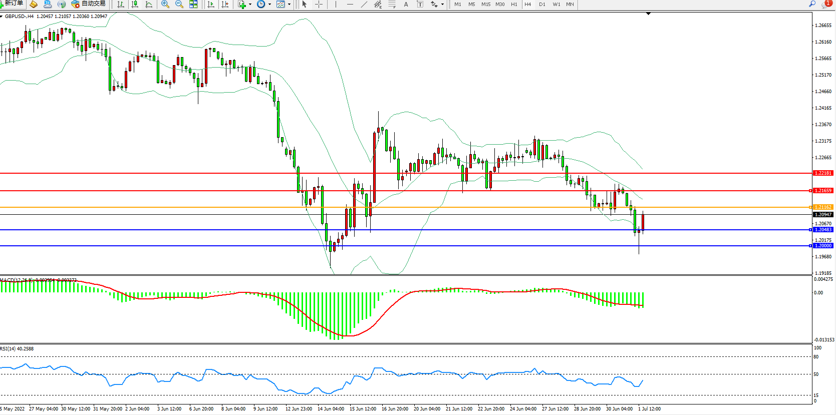 交易策略:1.21162下方看跌,目标1.20483、1.20000
