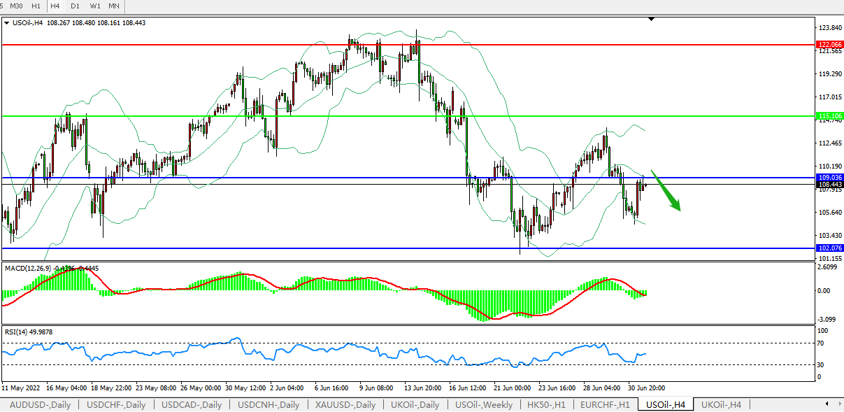 美国原油USOil   4小时图