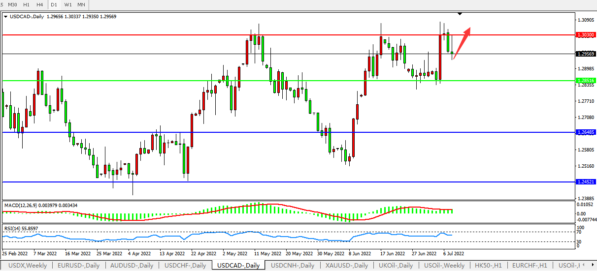 美元兑加元USDCAD 日线图: