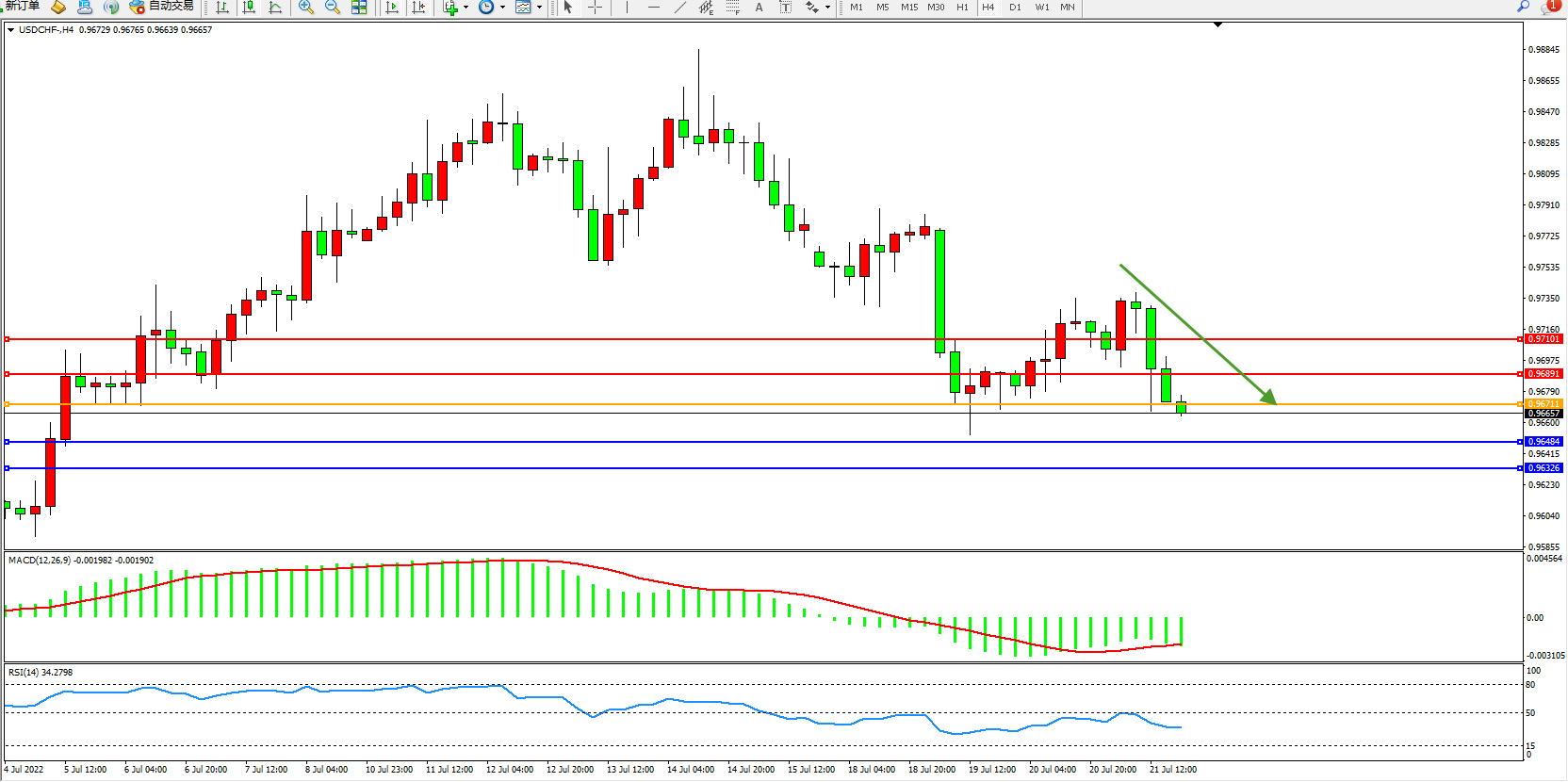 交易策略:0.96711下方看跌,目标0.96484、0.96326