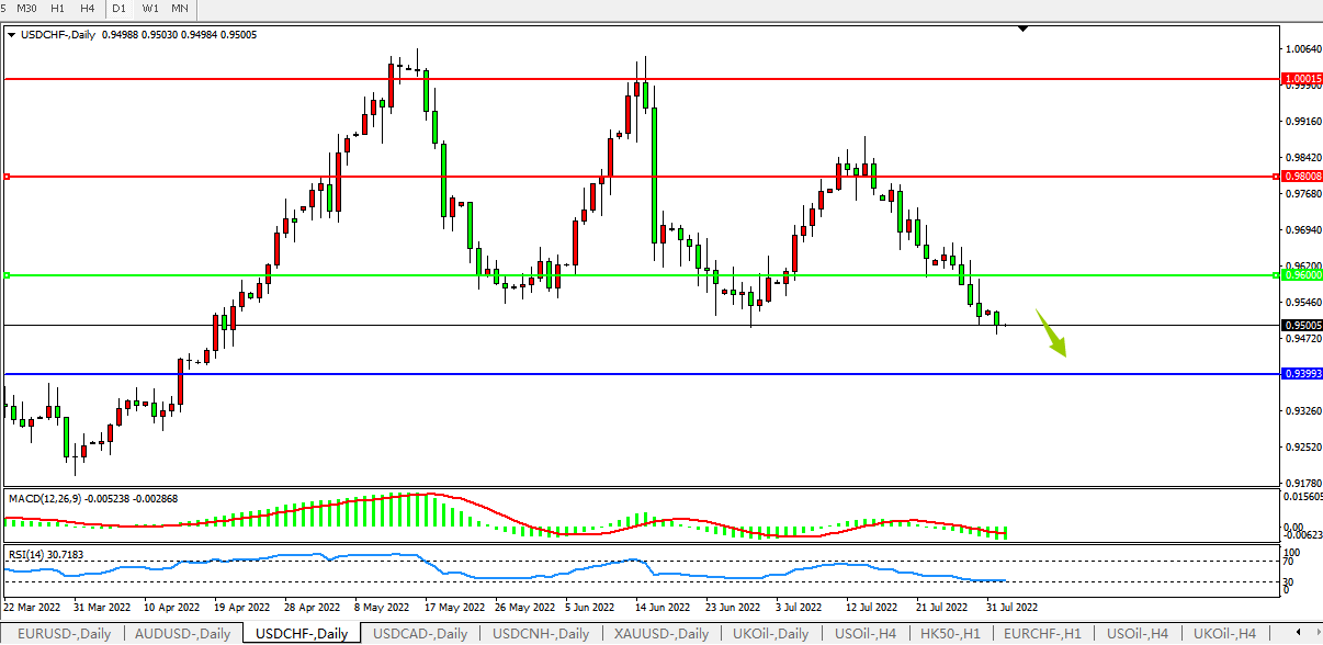 USDCHF:延续流畅下行 USDCHF  USDCAD