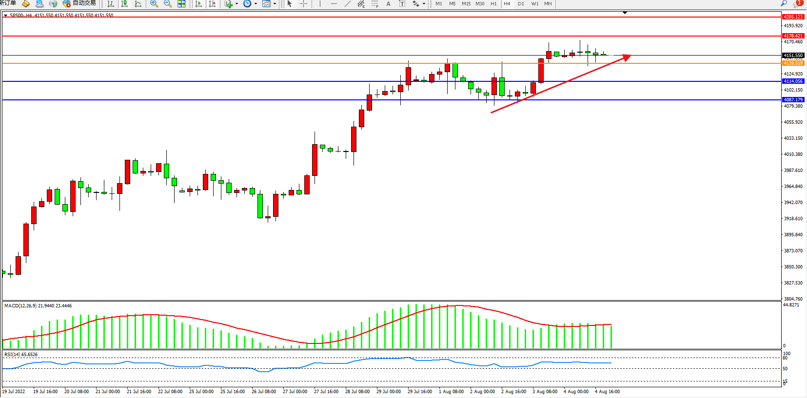 标普500指数8月4日(周四)收盘下跌3.74点,跌幅0.09%,报4151.43点;随着美联储通过继续加息来遏制数十年来居高不下的通胀,这一趋势可能会继续下去,加息可能会降低对工人的需求。