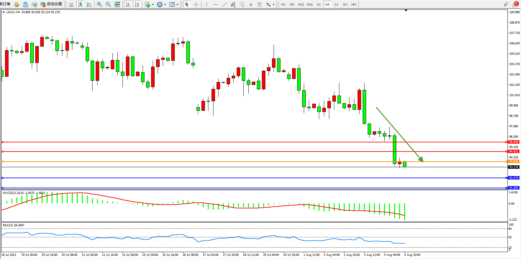 布油UKOil——4小时K线图显示: