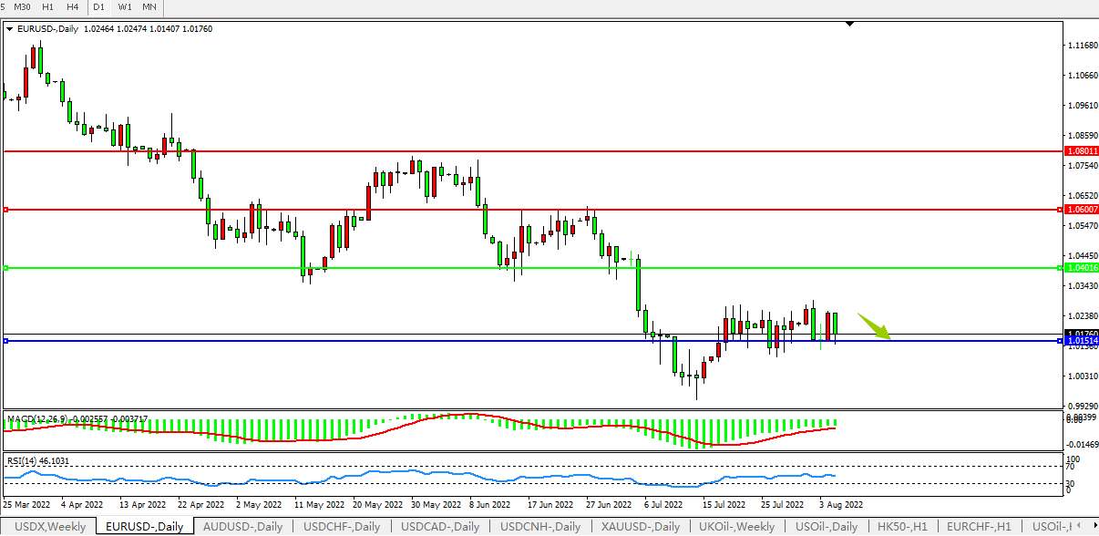 交易策略:1.0400下方看跌,目标1.0150、1.0000