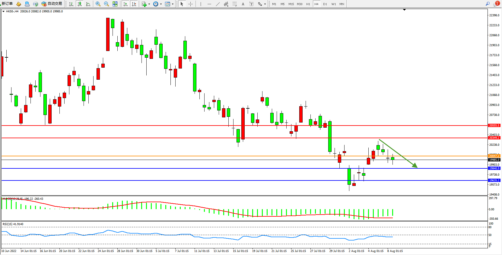 恒指HK50 4小时图