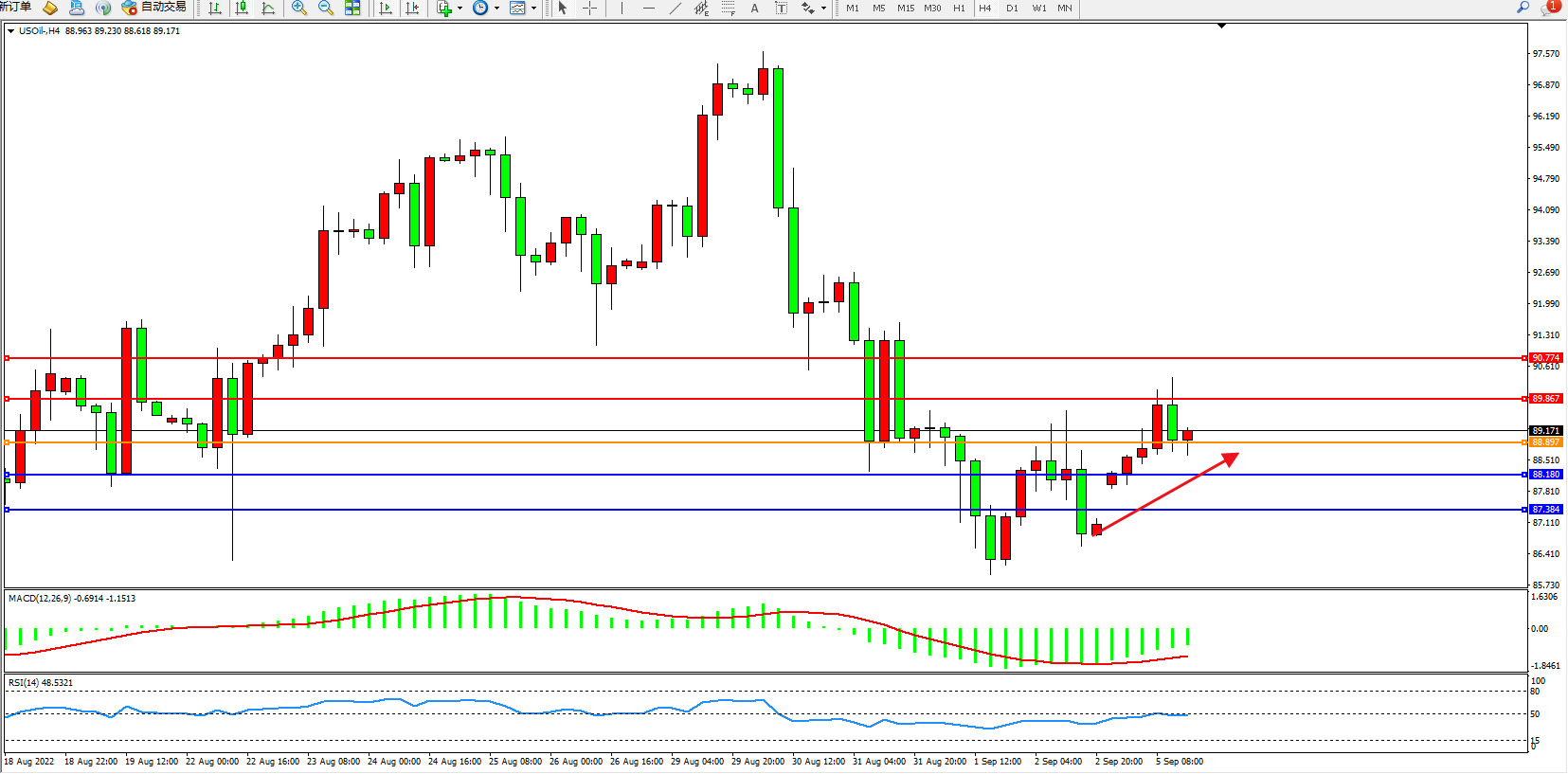 原油维持89.171附近震荡,投资者关注石油输出国组织及其合作伙伴(OPEC+)将在日内晚些时候会议上可能采取的减产保价行动。由于美国恰逢劳工节休市,市场流动性较往常清淡。