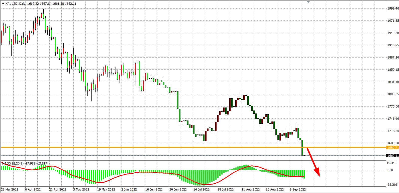 周四(9月15日)在CPI数据意外走高后,最新公布的美国8月零售销售数据也意外录得0.3%,好于预期的0%,美指维持在109上方运行,现货黄金震荡下跌,盘中一度跌破1660美元,创2020年4月以来新低,最终收跌1.91%。经济数据轮番轰炸,美指走强令金价面临巨大压力,9月的会议上加息75基点几乎已成定局,如果加息100基点的押注进一步加强,金价可能会进一步下跌。