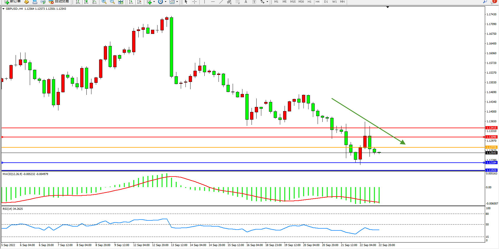 交易策略:1.12725下方看跌,目标1.12184、1.11920