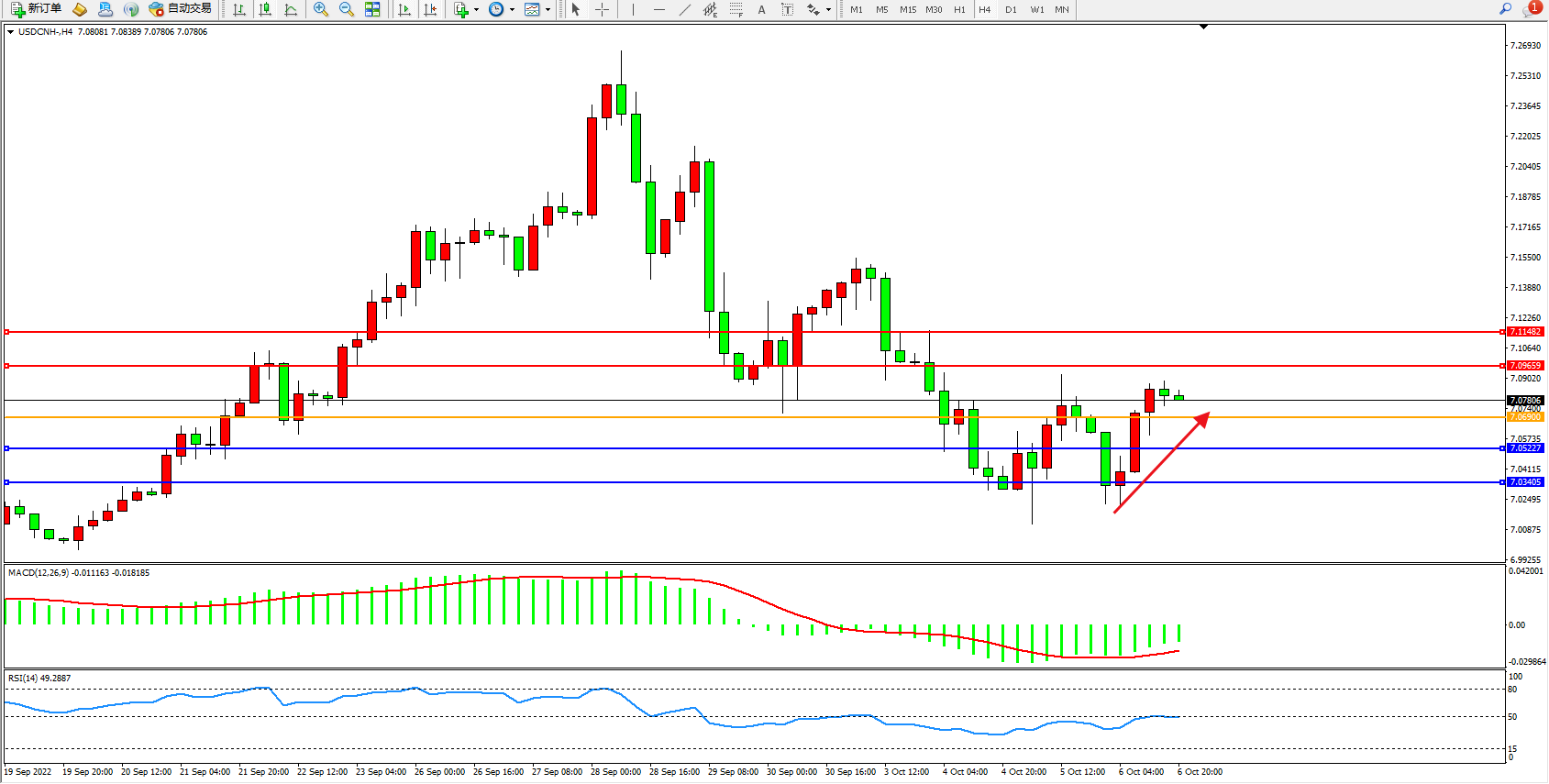 交易策略:7.06900上方看涨,目标7.09659、7.11482
