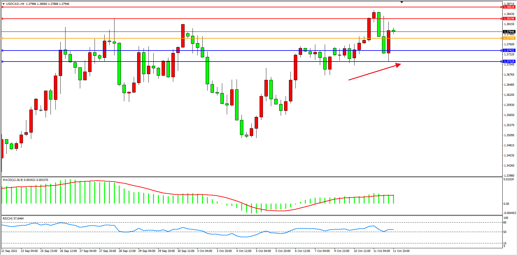 美元加元USDCAD——4小时K线图显示: