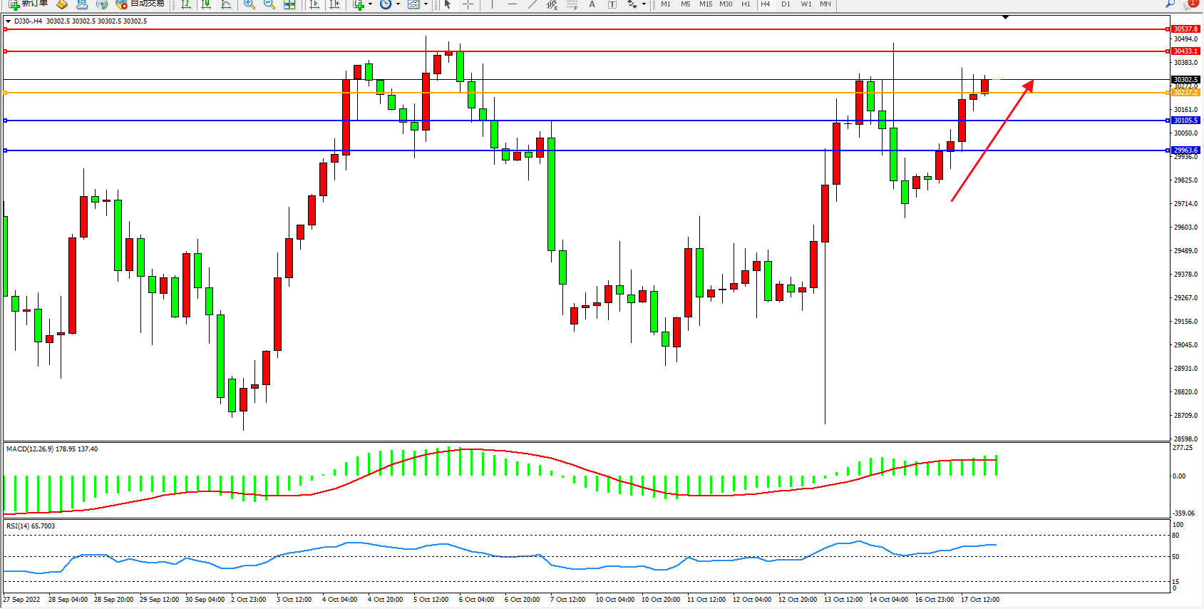 道琼斯指数10月17日(周一)收盘上涨553.96点,涨幅1.87%,报30188.79点;美元加息预期和美国通胀数据持续扰动全球市场,IMF再度下调明年全球GDP,欧佩克大幅下调 2022 年全球原油需求 增速预期,同时美国能源部削减2023年需求预估。