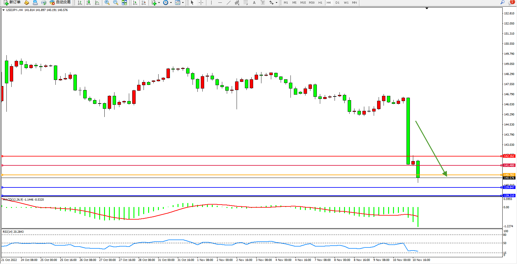 4小时图看:空头动力急速下挫,低位有继续向下移动态势,市场空头情绪态势良好,MACD指标处于空头区域持续下行,RSI指标处于空头区域低位弱势徘徊;