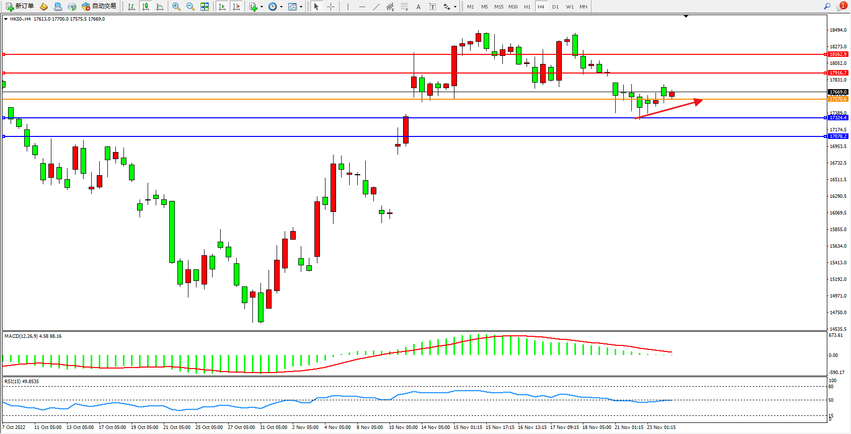 恒指HK50 4小时图