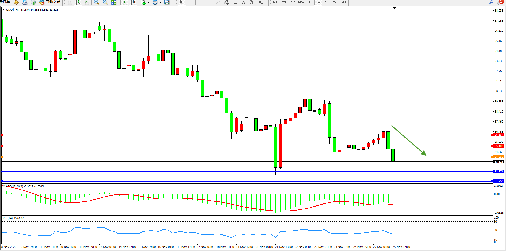 布油维持83.626附近震荡,市场交投清淡,这一周的交易主要受需求担忧和西方国家在俄罗斯石油价格上限的问题上讨价还价影响。假期后成交清淡,布伦特原油本周下跌4.6%,