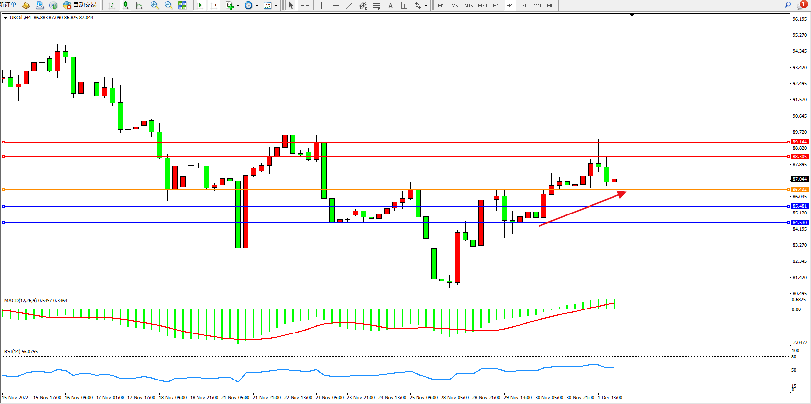 布油UKOil——4小时K线图显示: