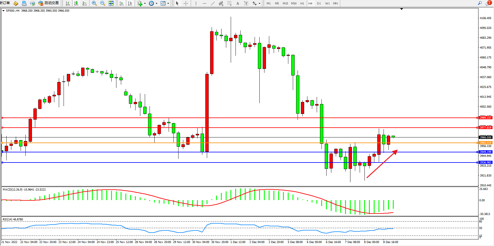 标普500指数12月8日(周四)收盘上涨29.58点,涨幅0.75%,报3963.50点;市场预计美联储将在12月13日至14日的会议上小幅加息50个基点,但这不应被视为转向更为温和的政策立场。通胀水平仍然过高,劳动力市场过于强劲,供求关系过于失衡,美联储无法放松警惕。