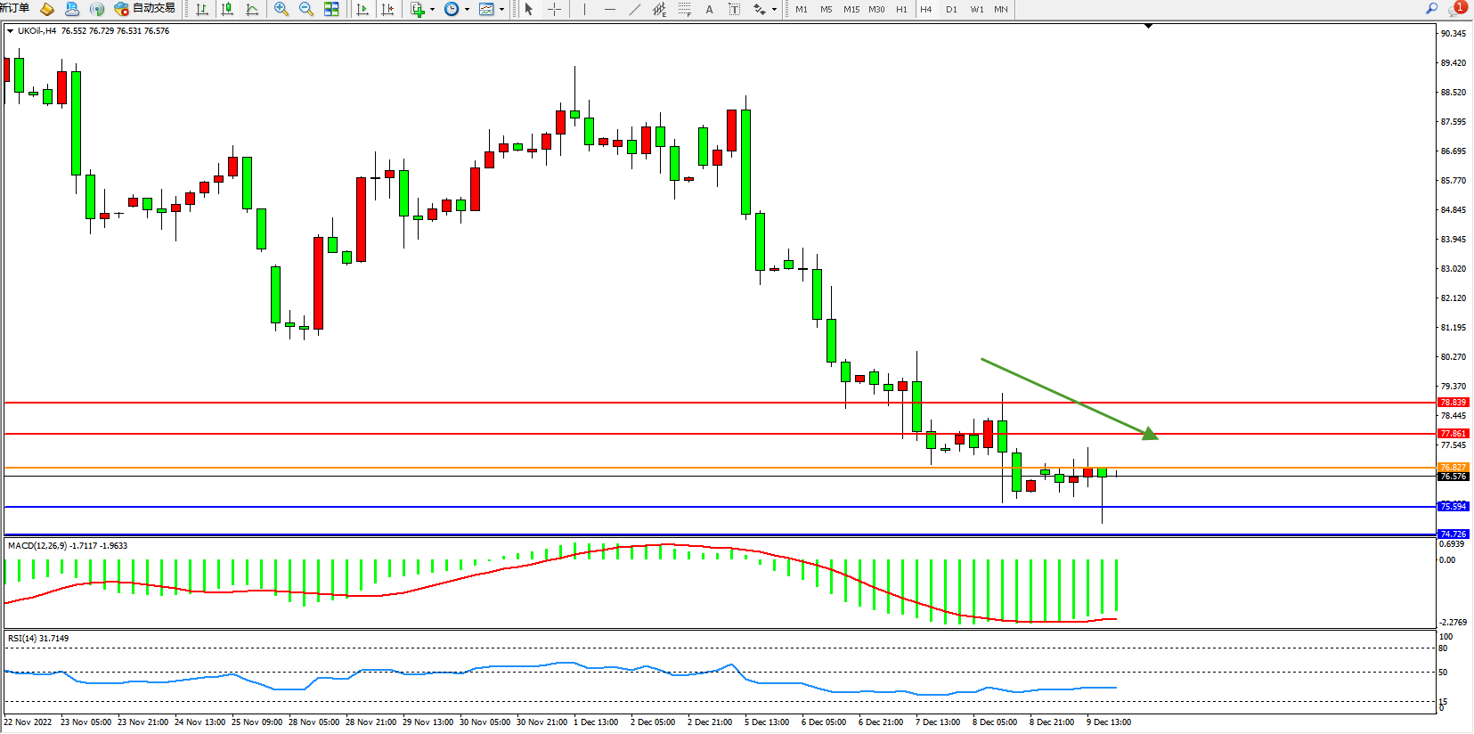 交易策略:78.827下方看跌,目标75.594、74.726