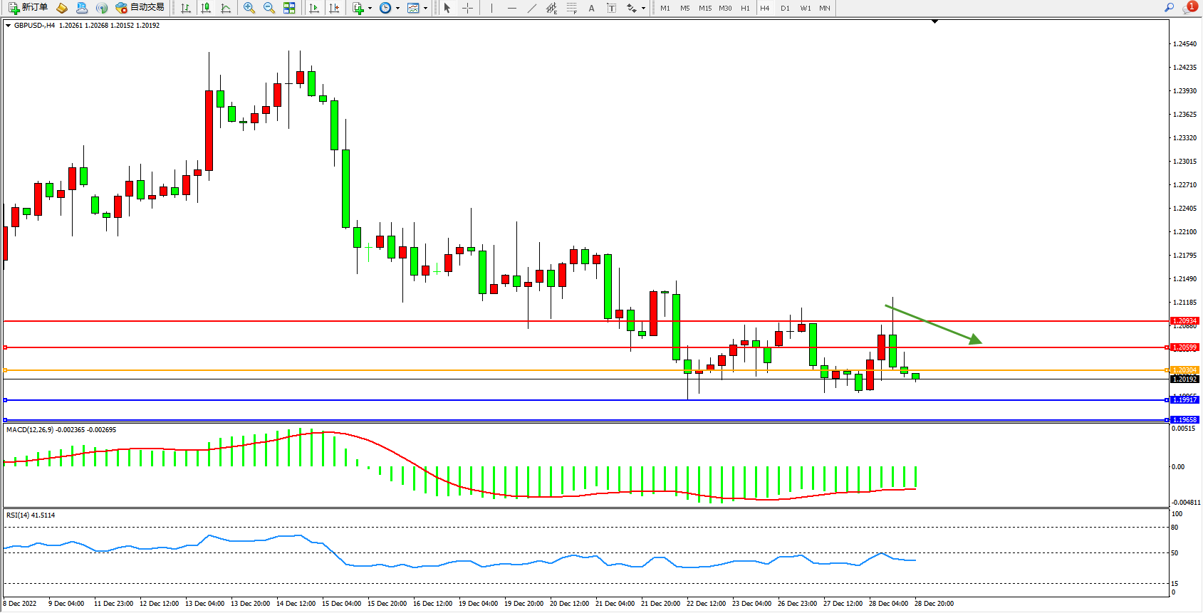 交易策略:1.20304下方看跌,目标1.19917、1.19658
