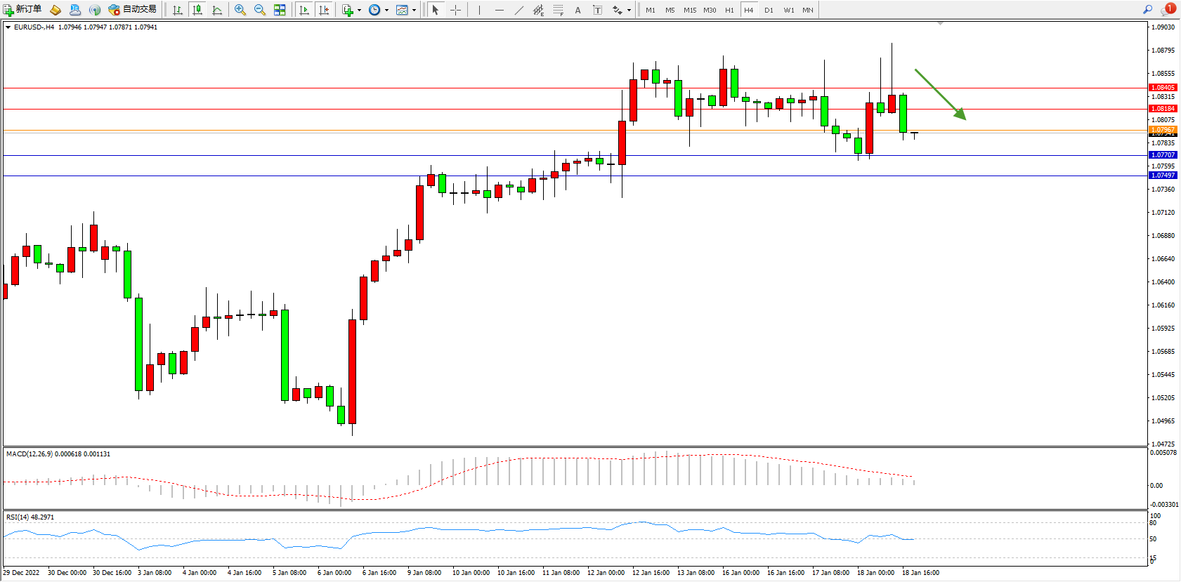 交易策略:1.07967下方看跌,目标1.07707、1.07497