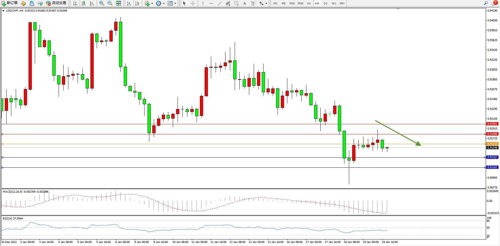 交易策略:0.91616下方看跌,目标0.91357、0.91162