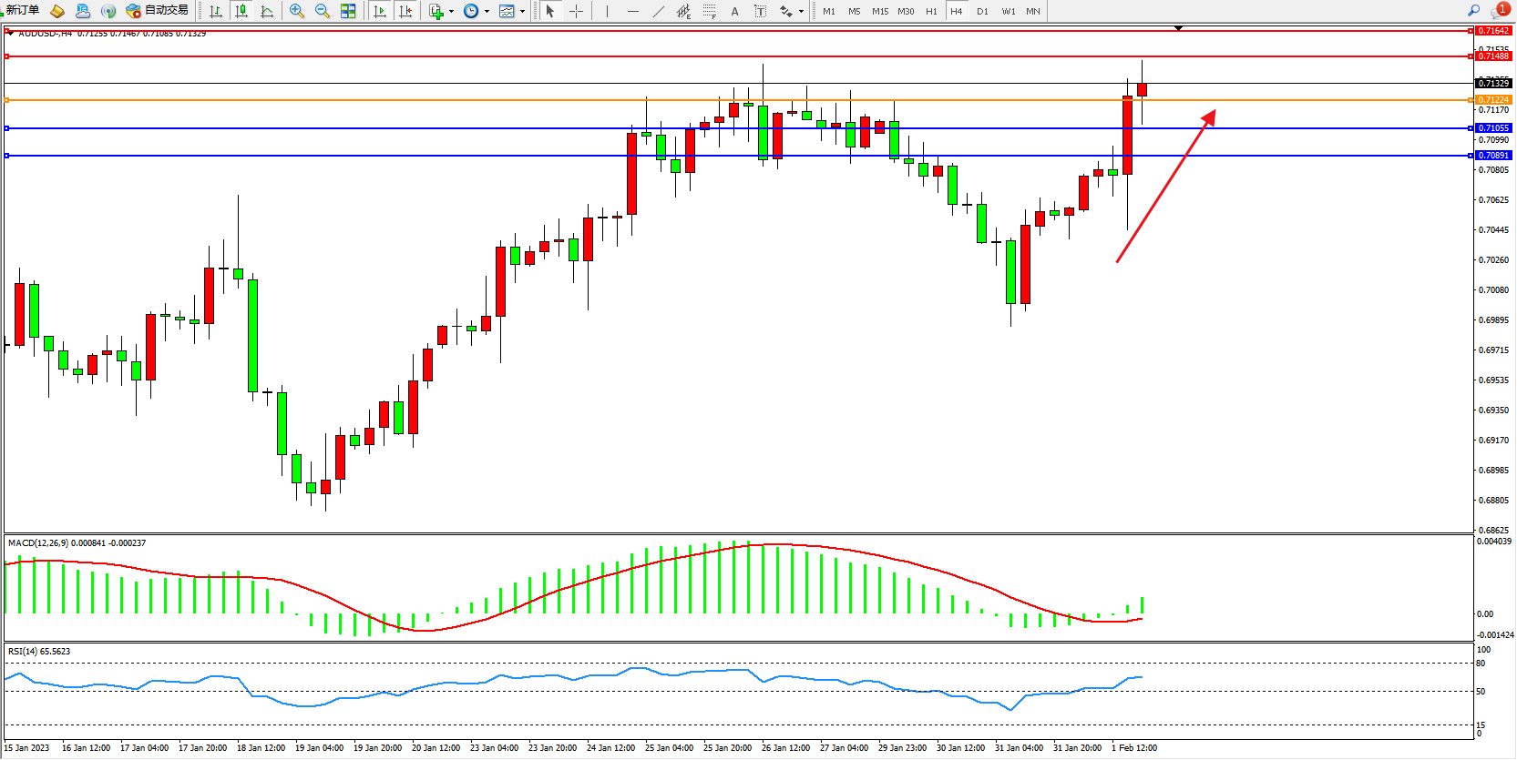 交易策略:0.71224上方看涨,目标0.71488、0.71642