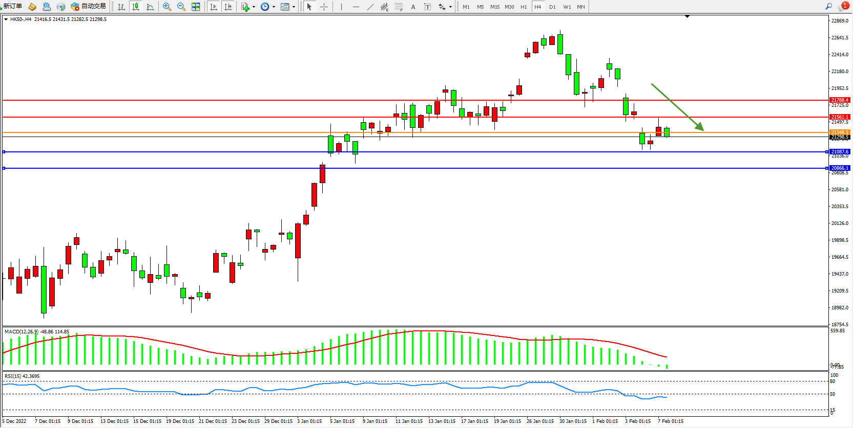 4小时图看:空头动力维持震荡下行,短期跌势或将延续,市场整体处于阶梯下行移动中,MACD指标处于0轴线下侧弱势徘徊,RSI指标处于50均衡线下侧弱势整理;
