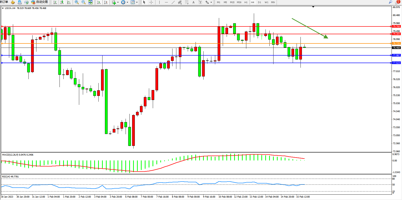 原油维持78.468附近震荡,美国至2月10日当周EIA原油库存 1628.3万桶,预期116.6万桶,前值242.3万桶。EIA俄克拉荷马州库欣原油库存 65.9万桶,前值104.3万桶。