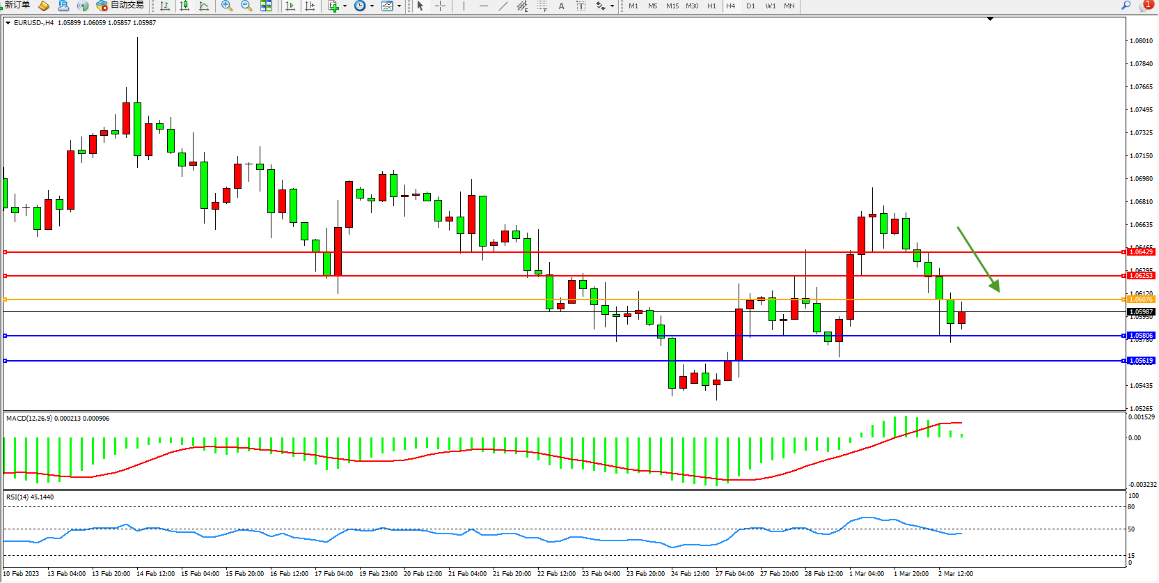 交易策略:1.06076下方看跌,目标1.05806、1.05619