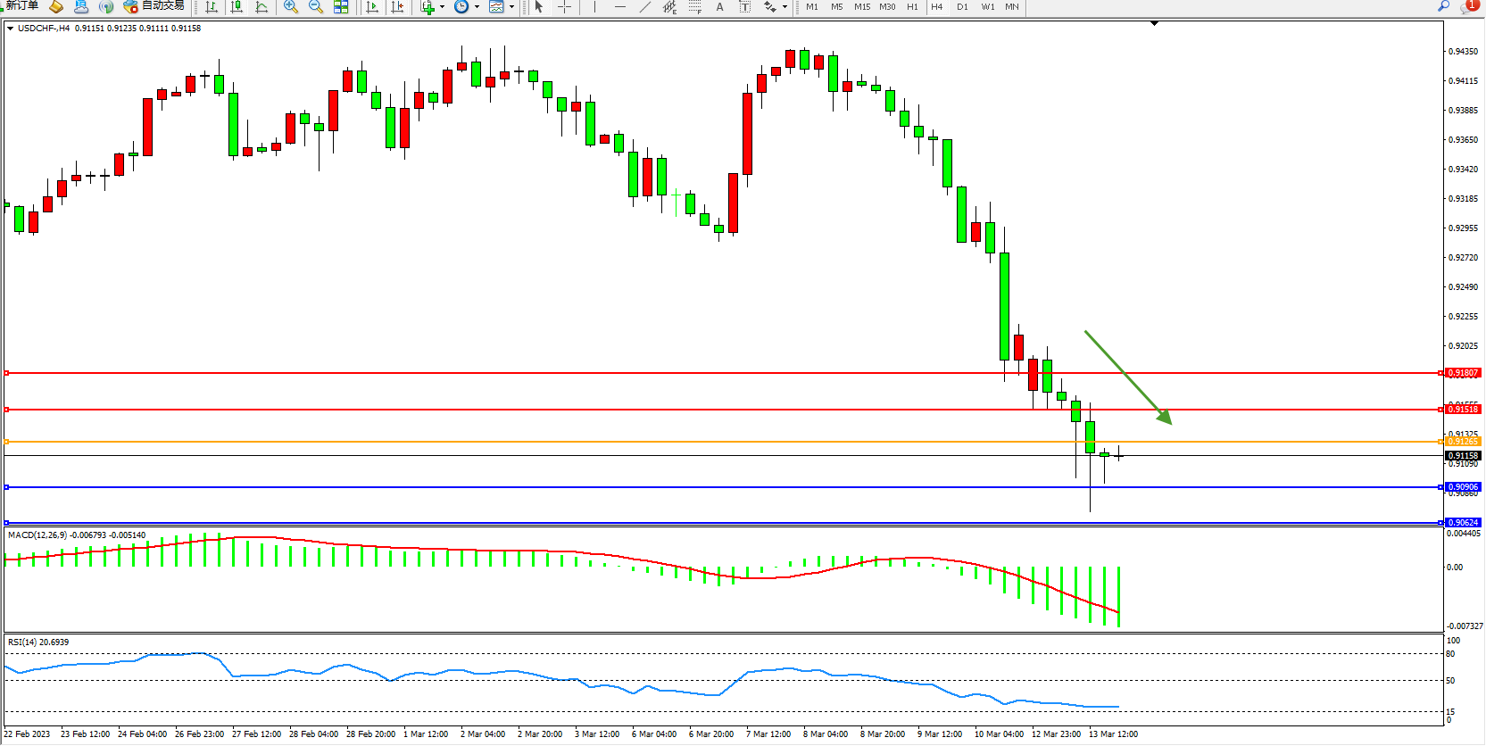 美元兑瑞郎维持0.91158附近震荡,美债收益率大跌,硅谷银行倒闭引发的不确定性促使投资者寻求避险,押注美联储本月可能很难重新加速升息,并且不排除年内降息可能。