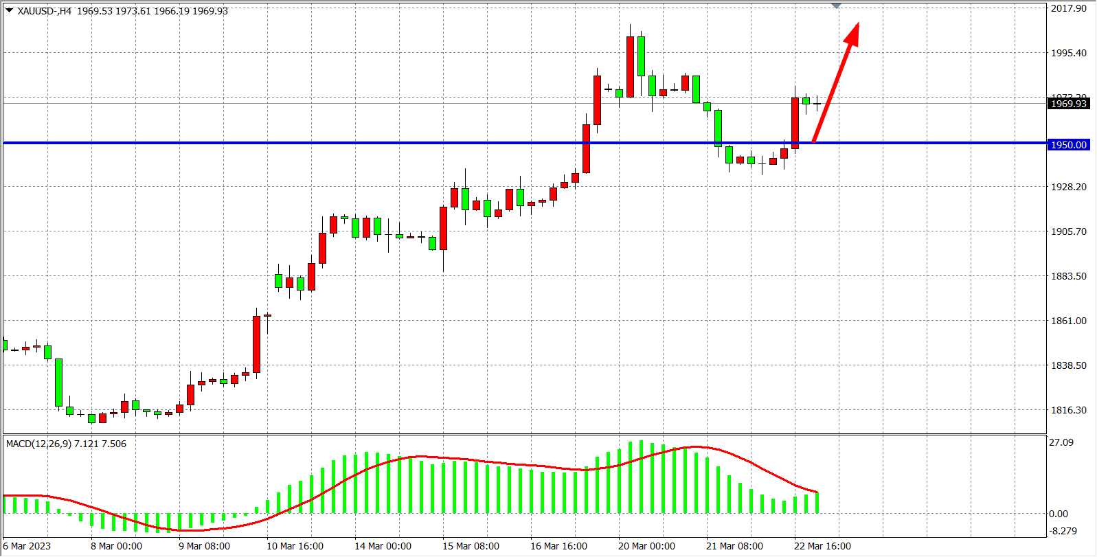周三(3月22日)美联储在议息会议上如期加息25个基点,但终端利率维持不变,并且放弃了“持续加息”的承诺,因此美元指数大跳水,美债收益率也遭遇重挫,美国财长耶伦声称将不考虑扩大联邦存款保险范围,这一表态令市场避险情绪再次升温,,现货黄金一度大涨超2%,最终收涨1.52%。随着美联储偏“鸽派”的预期落地,金价重拾涨势,有望延续多头。
