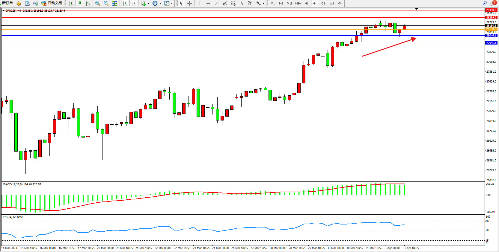 日经225指数4月3日(周一)收盘上涨153.52点,涨幅0.55%,报28195.00点。日本1-3月份企业信心恶化,降至两年多来的最低水平。全球经济增长放缓给这个依赖出口的经济体的前景蒙上了阴影。