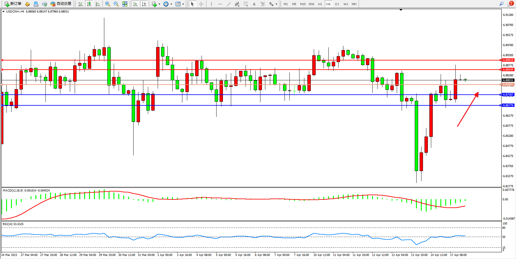 交易策略:6.87807上方看涨,目标6.88549 6.89019