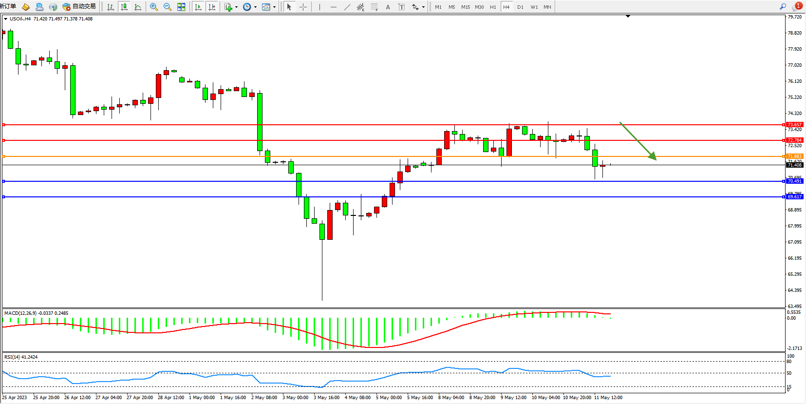 原油USOil——4小时K线图显示: