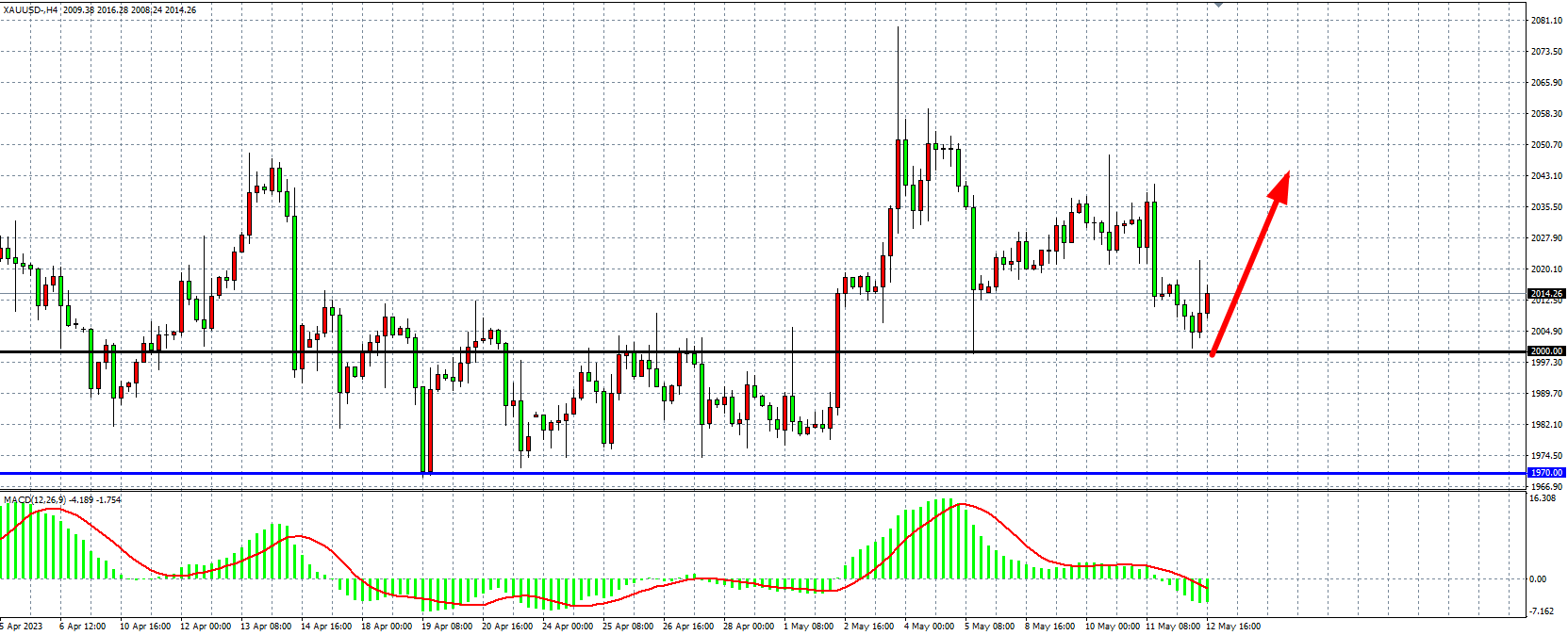 现货黄金XAUUSD 四小时图