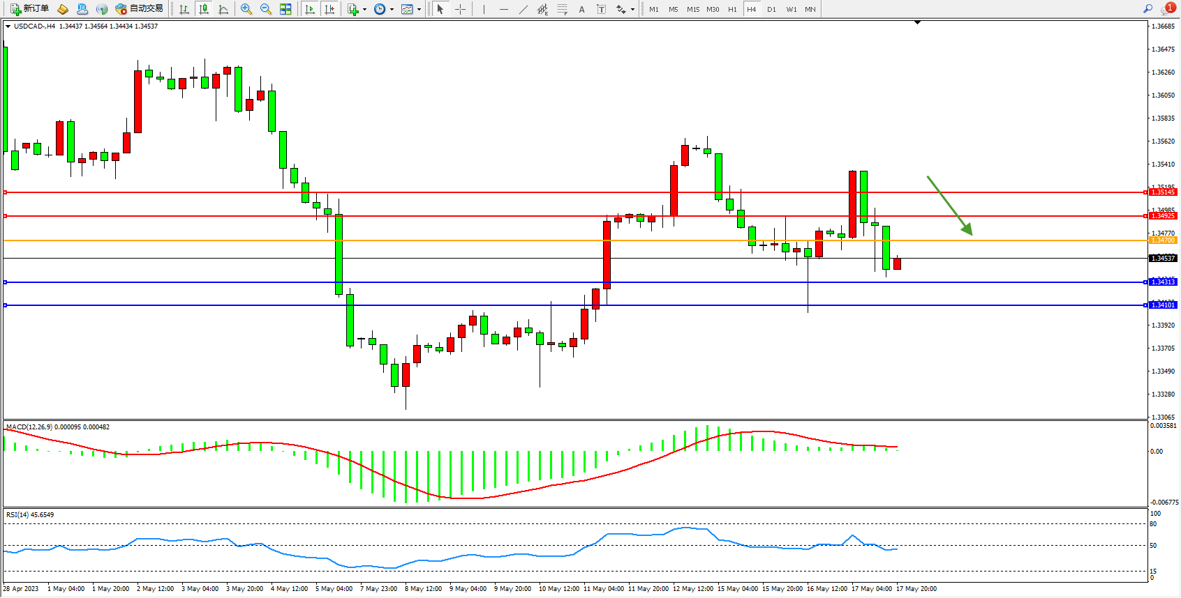 美元加元USDCAD——4小时K线图显示: