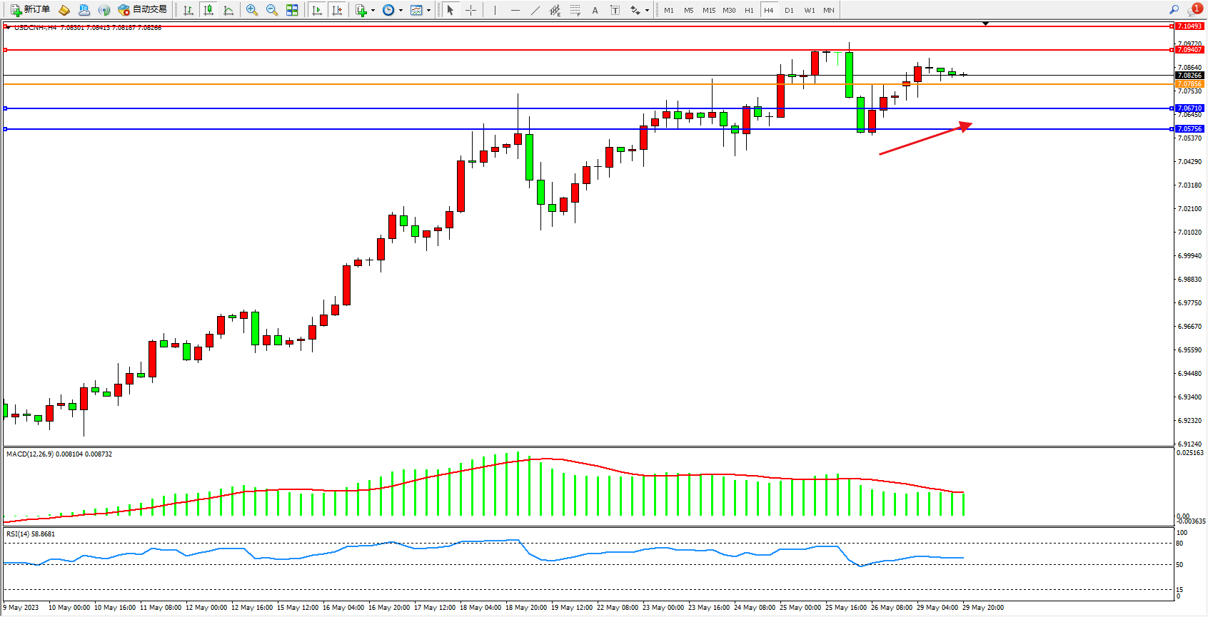 备选策略:7.07856下方看跌,目标7.06710 7.05756