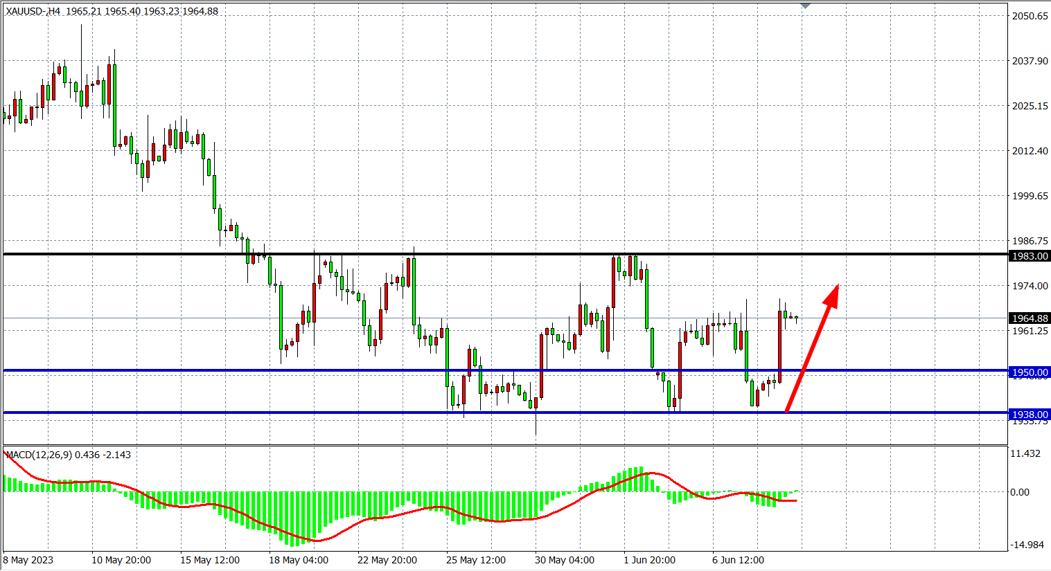 4小时图看,黄金回落1938附近再度企稳反弹,重返1960之上,MACD量能在附近再度缩量选择方向,当前行情维持宽幅整理形态,支撑上移1950附近,上方压力关注1983。