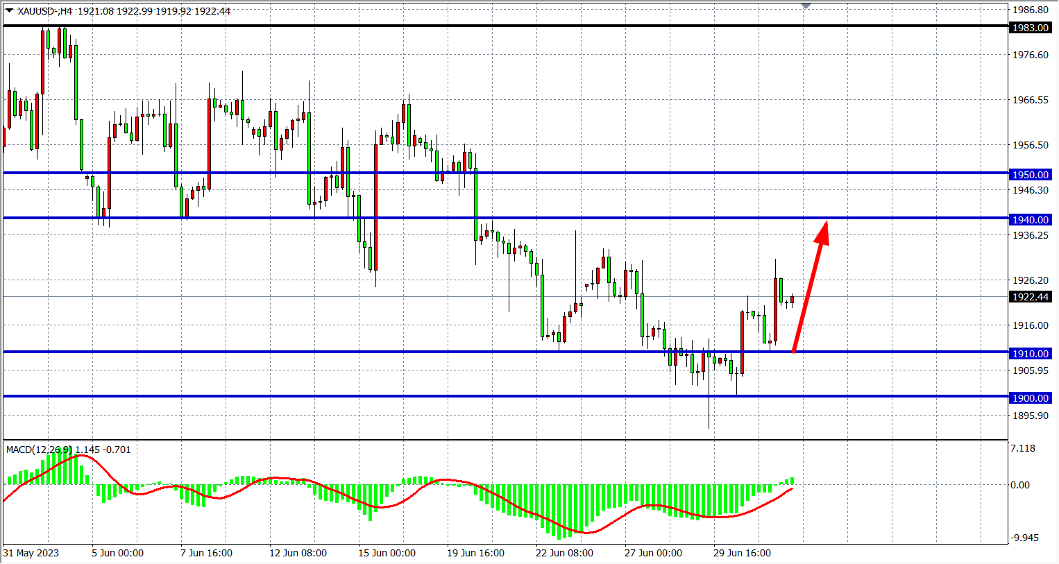 4小时图看,黄金在1900关口之上继续反弹,MACD量能上穿零轴,趋势延续反弹,支撑关注1910-1900,阻力关注1940-1950。