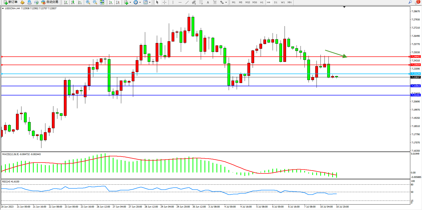 备选策略:7.23129上方看涨,目标7.23919  7.24642