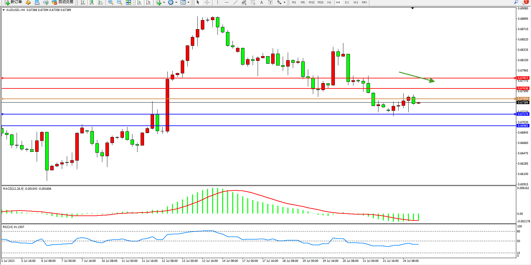 阻力位:0.67636 0.67822