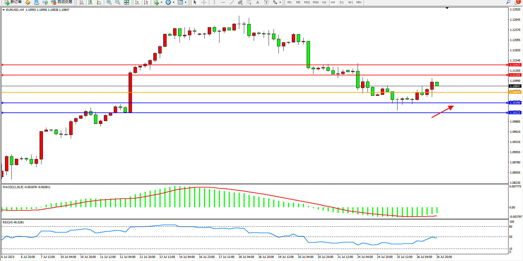 备选策略:1.10674下方看跌,目标1.10390  1.10122