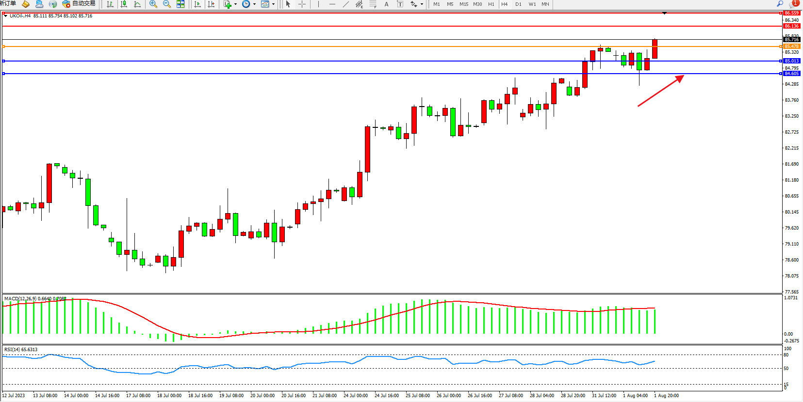 布油UKOil——4小时K线图显示: