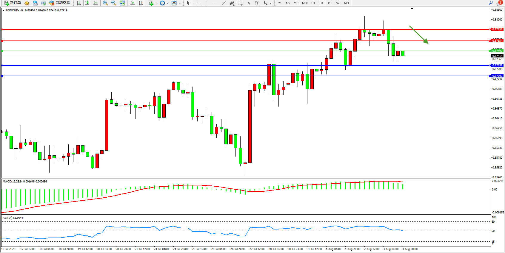 备选策略:0.87492上方看涨,目标0.87654 0.87836
