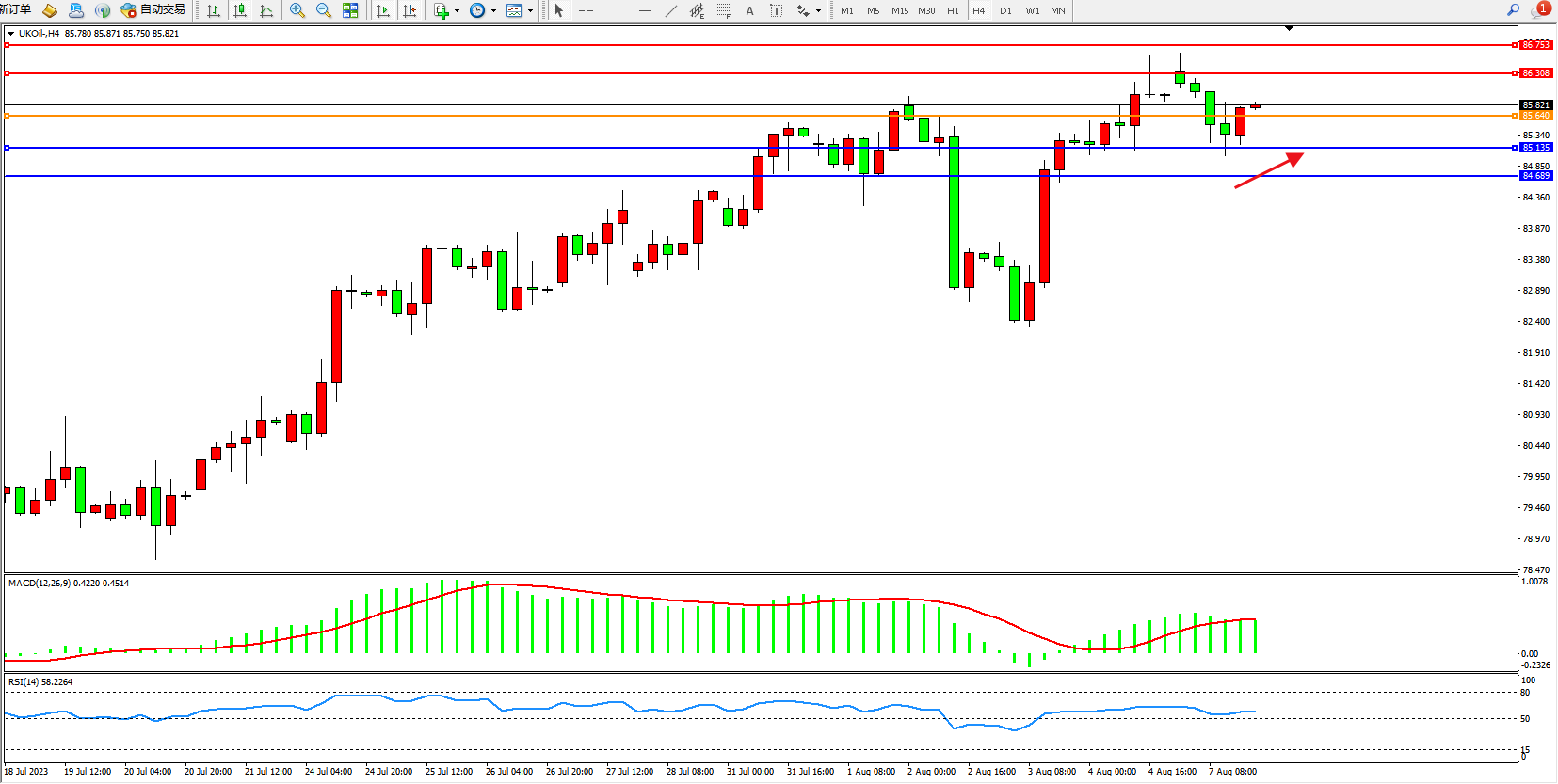 布油维持85.821附近震荡,市场对沙特和俄罗斯将继续减产多久表现出疑虑。全球最大出口国沙特阿拉伯上周四(8月3日)将其100万桶/日的自愿减产期限延长至9月底。