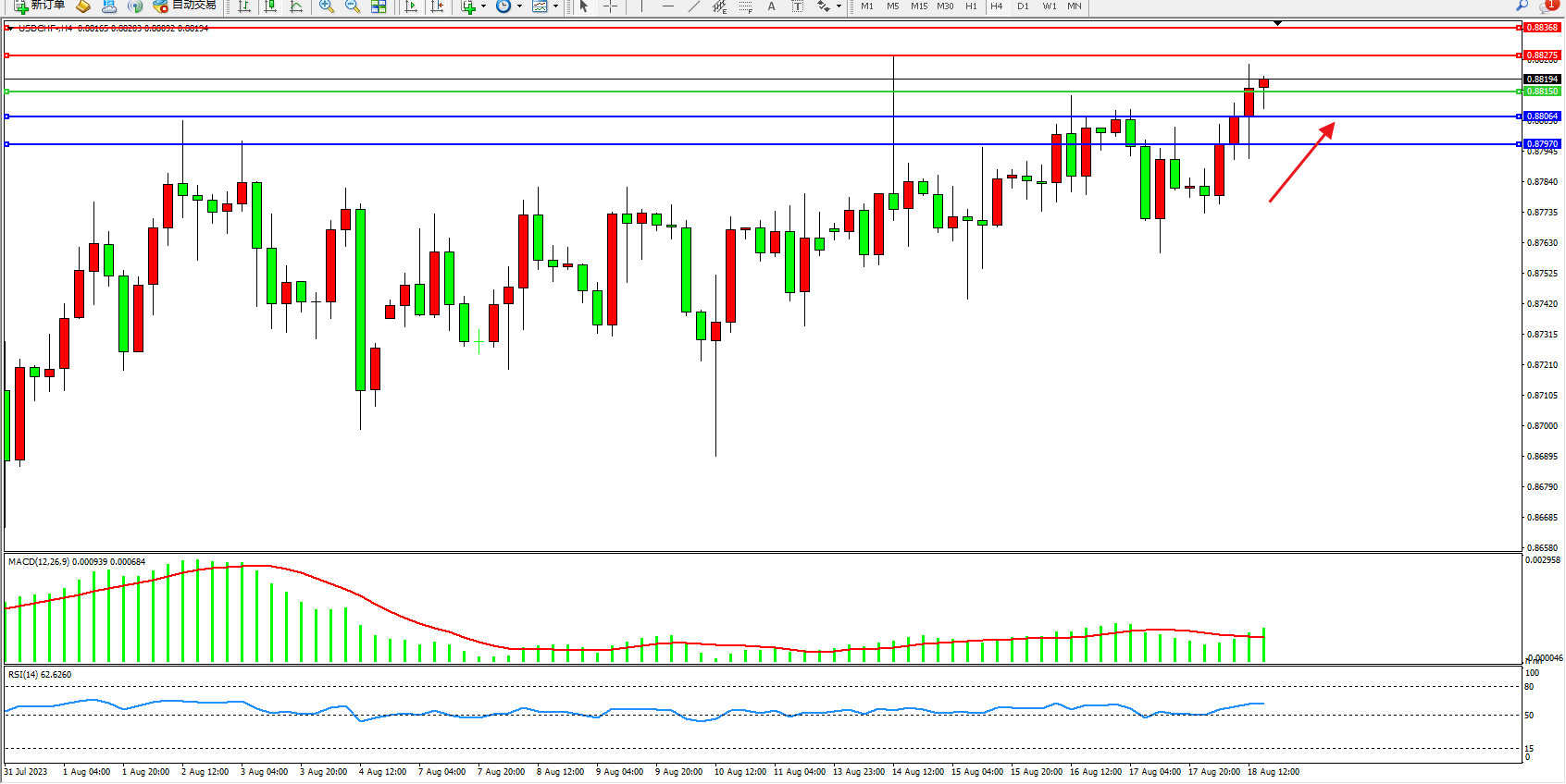 交易策略:0.88150上方看涨,目标0.88275 0.88368