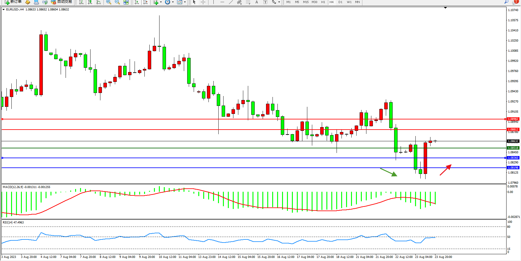 交易策略:1.08518上方看涨,目标1.08812 1.08982